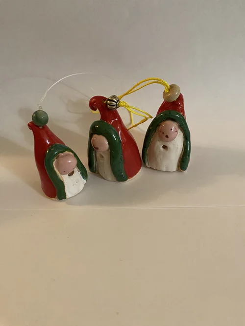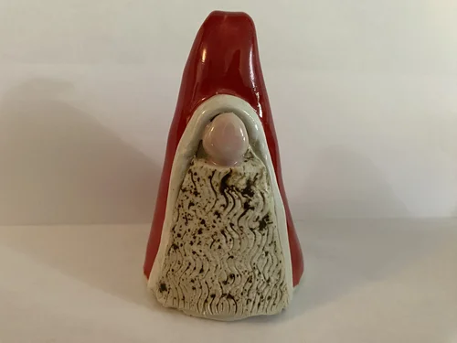 Christmas Gnome ornaments are approximately 1.5 to 2 inches tall. Hand built pottery with red, green and white glazes.